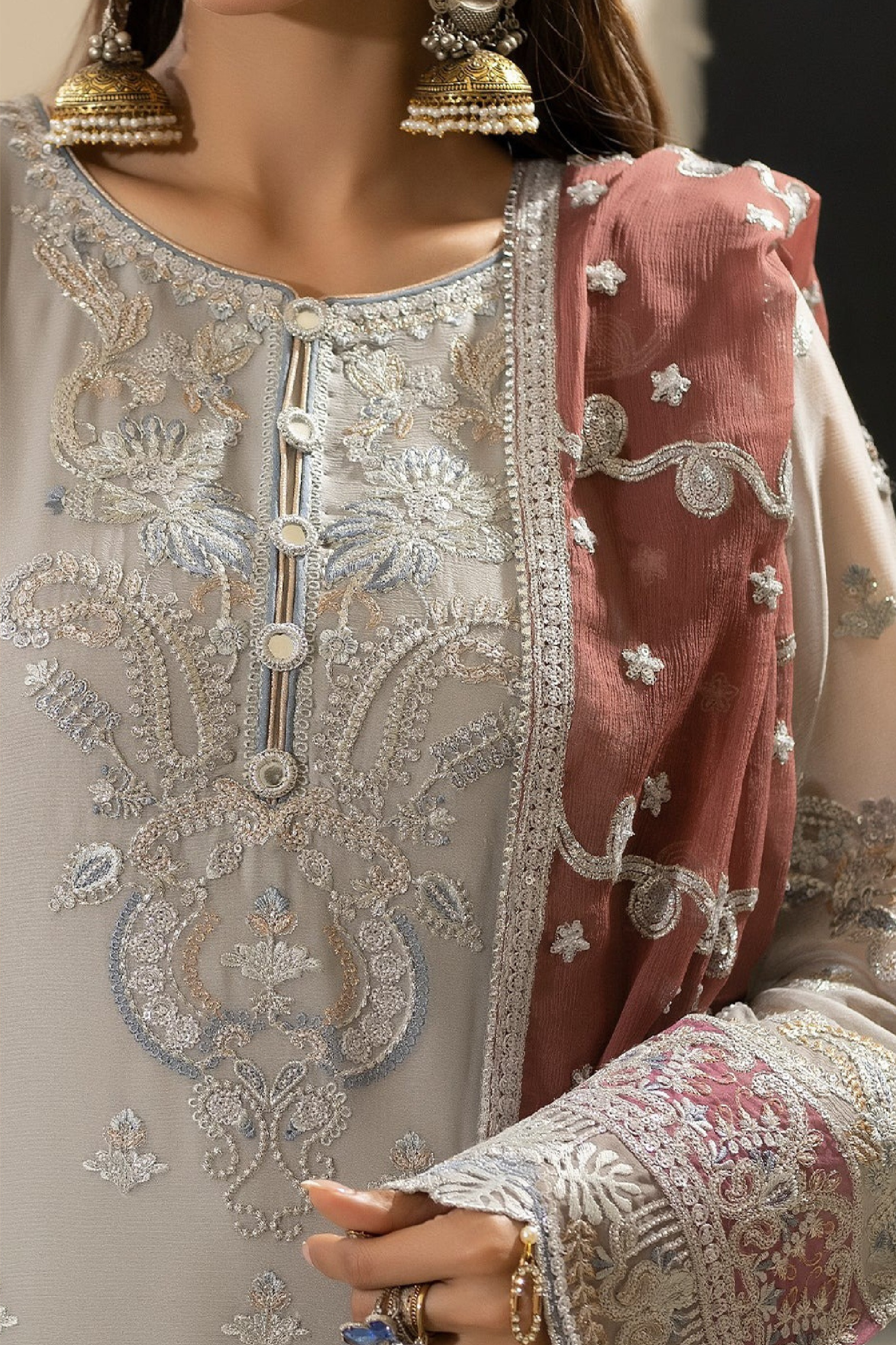 🧵 Dupatta : Luxury Embroidered Chiffon featuring Intricate Embroidery & Contrast Detailing