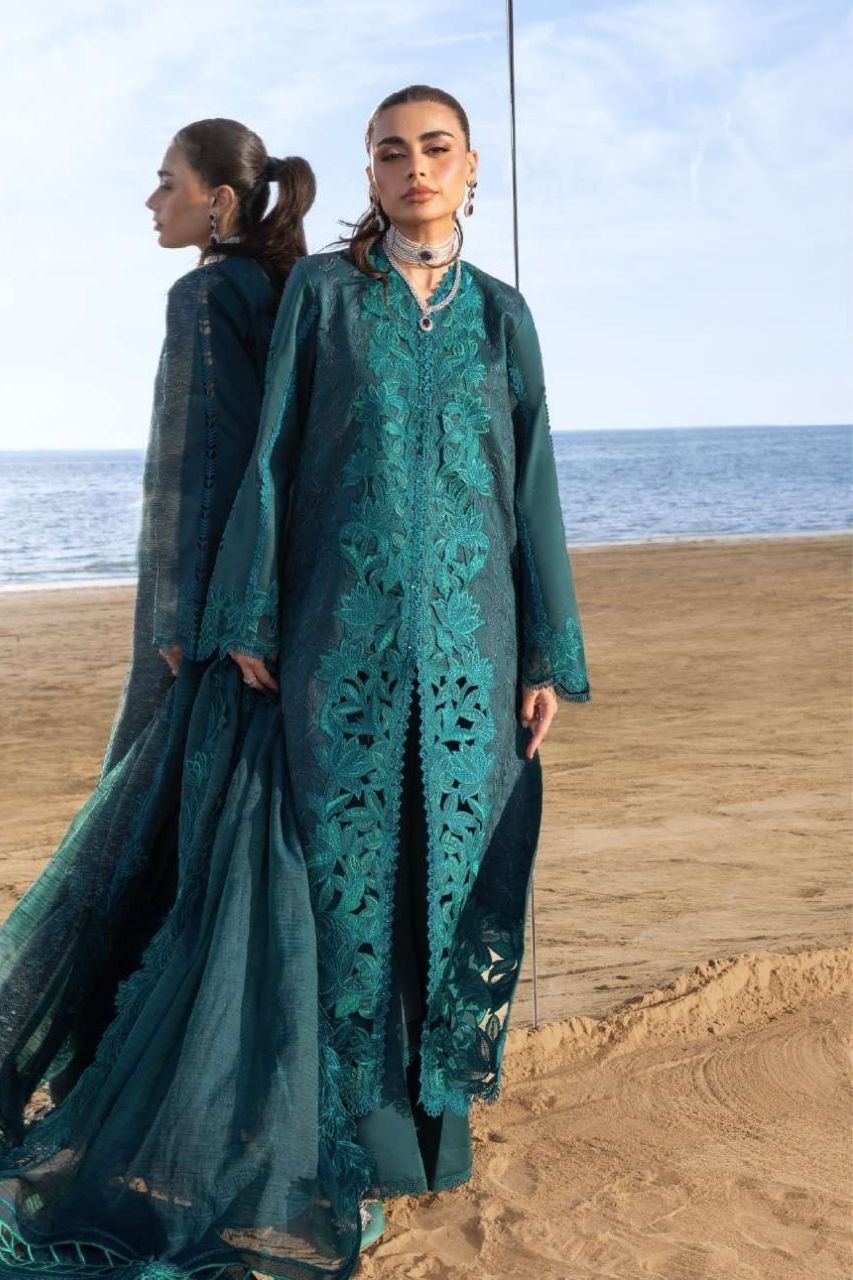 Dyed Organza Embroidered Cut Work Front Panel Left Side 1 Piece