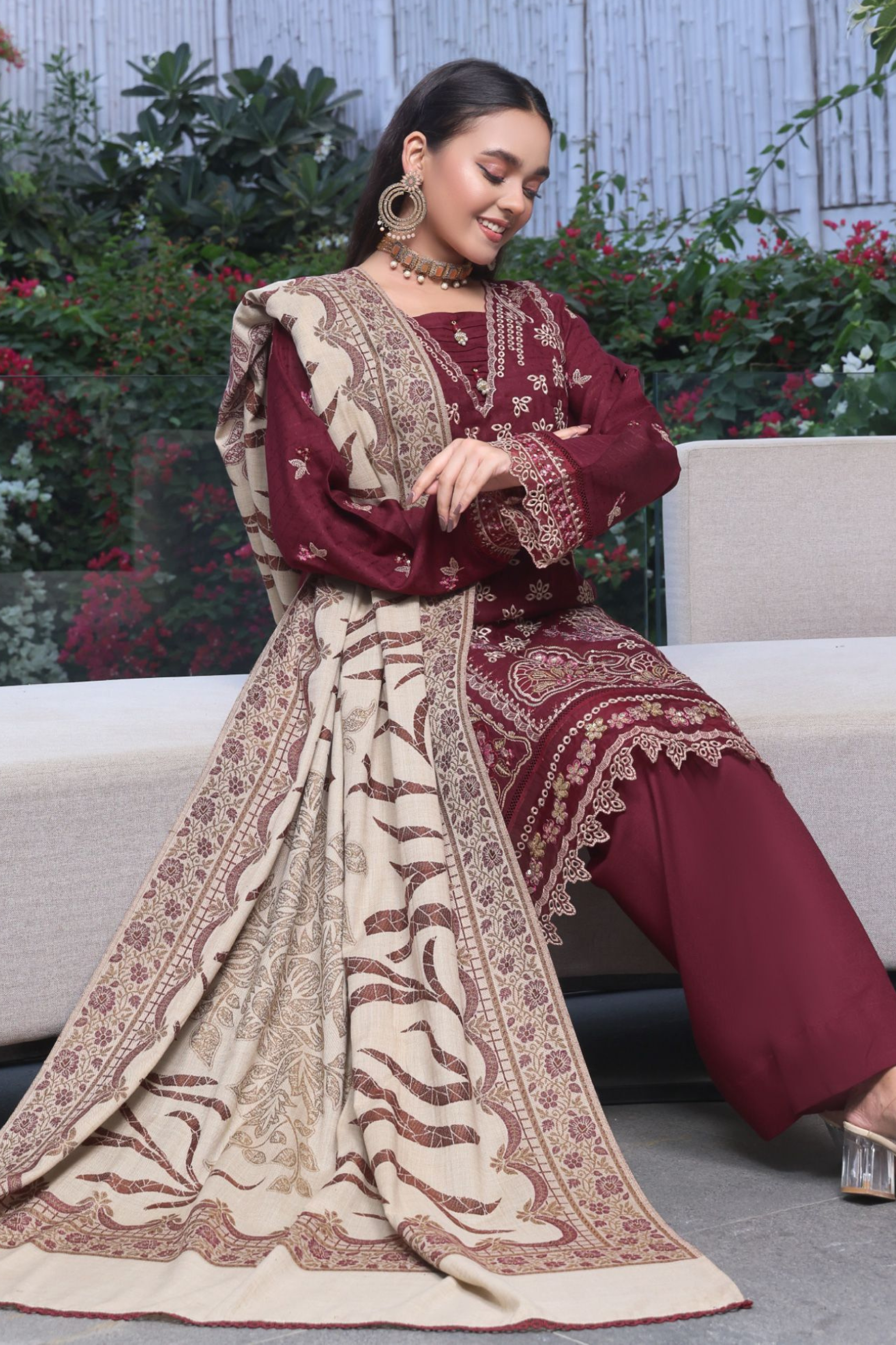 Blanca By Dressline – Embroidered Dhanak With Jacquard Shawl (3PC)