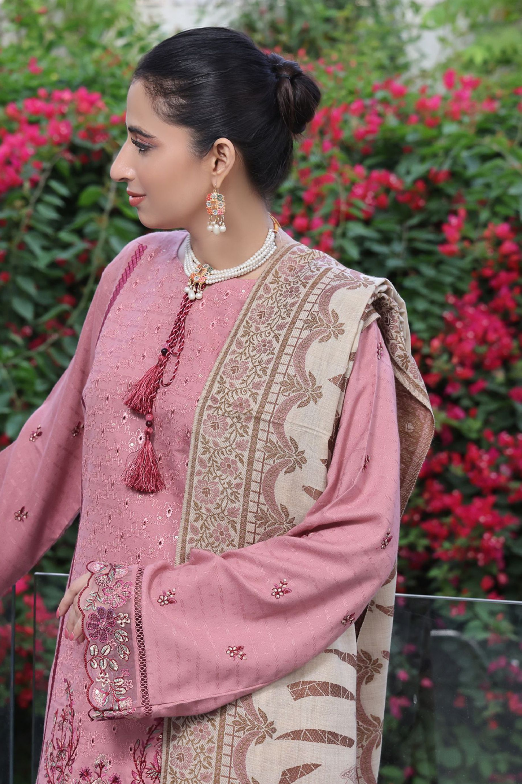 Blanca By Dressline – Embroidered Dhanak With Jacquard Shawl (3PC)