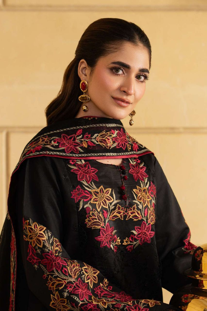 Dyed Organza Embroidered Front Neck
