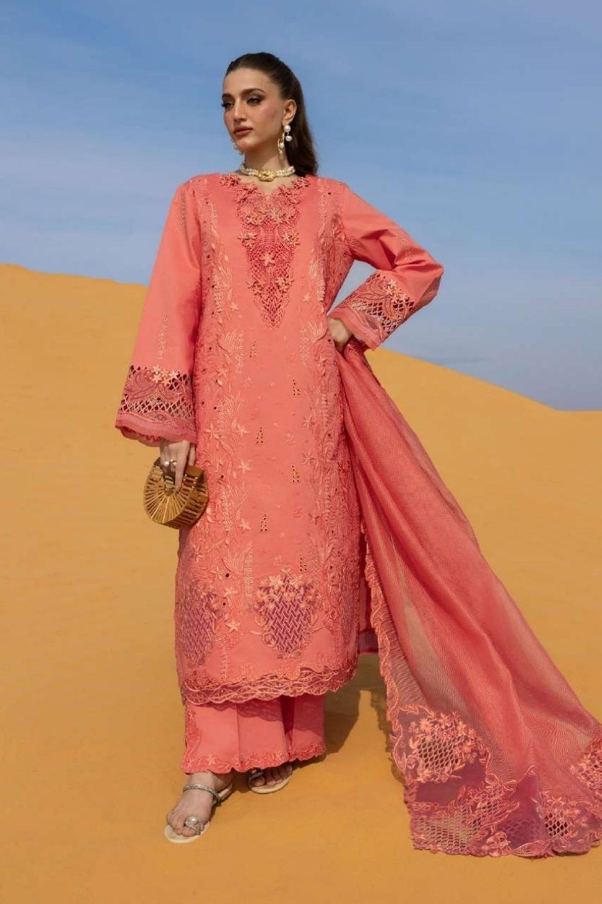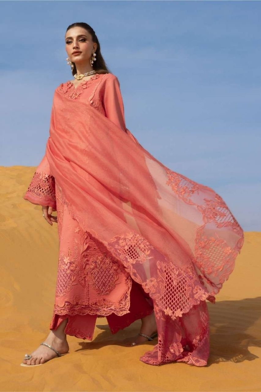 Dyed Lawn Embroidered Cut Work Back 52 Inches