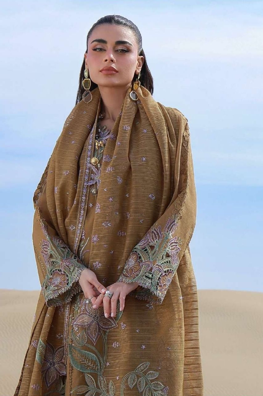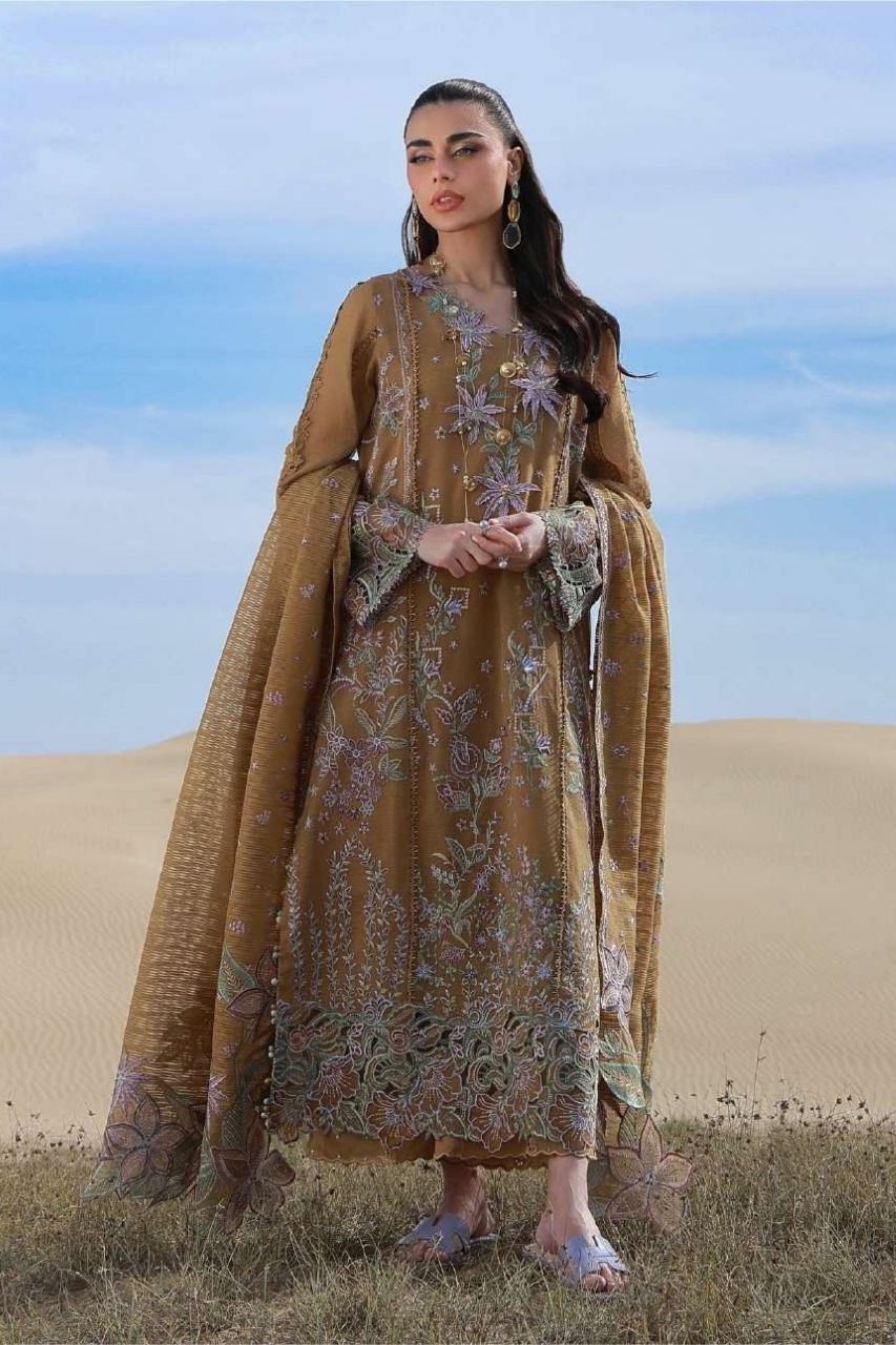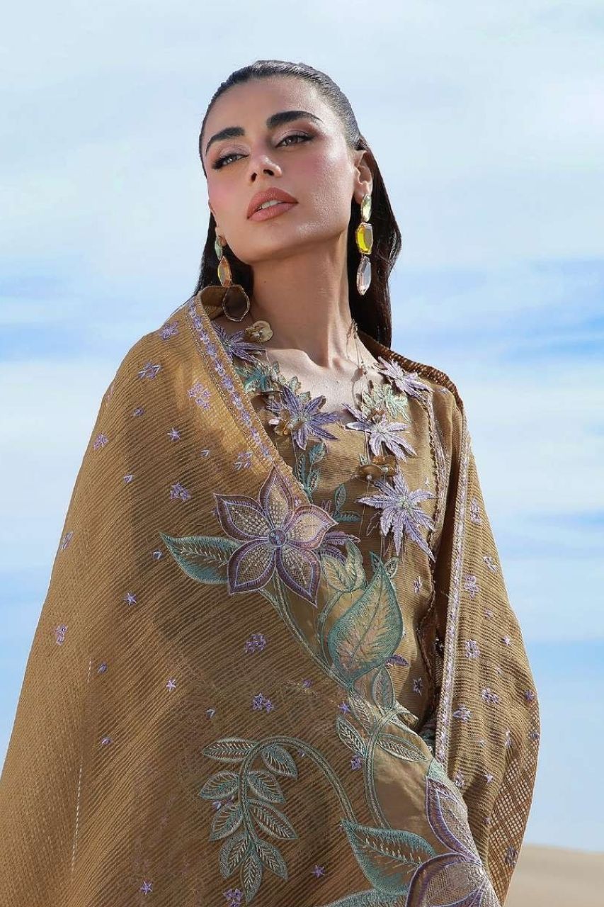 Dyed Organza Embroidered Neck 3D Flowers 01 Piece