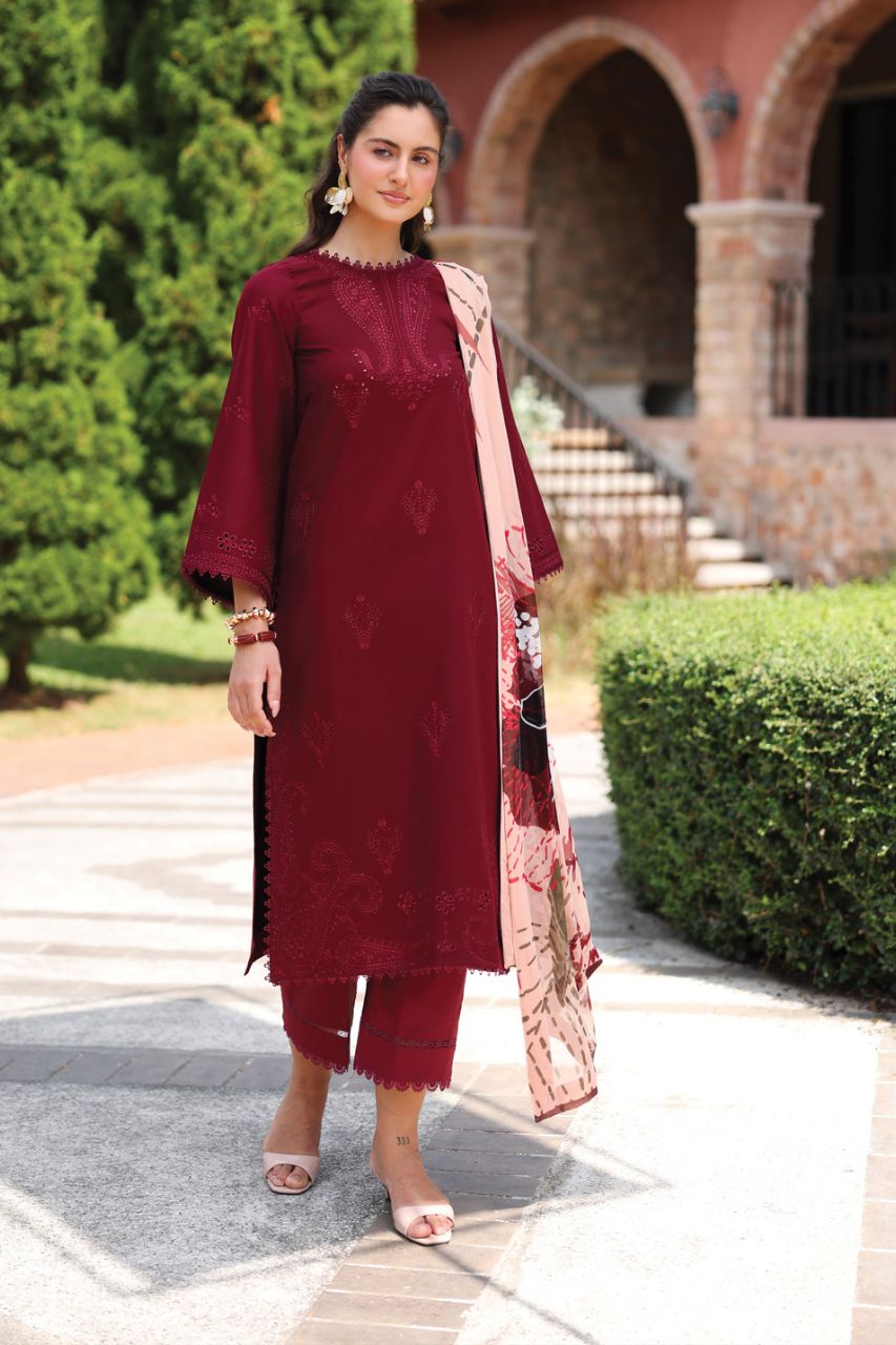 Rameen By Raaya Luxury Emb Lawn With Printed Chiffon Dupatta-3PC