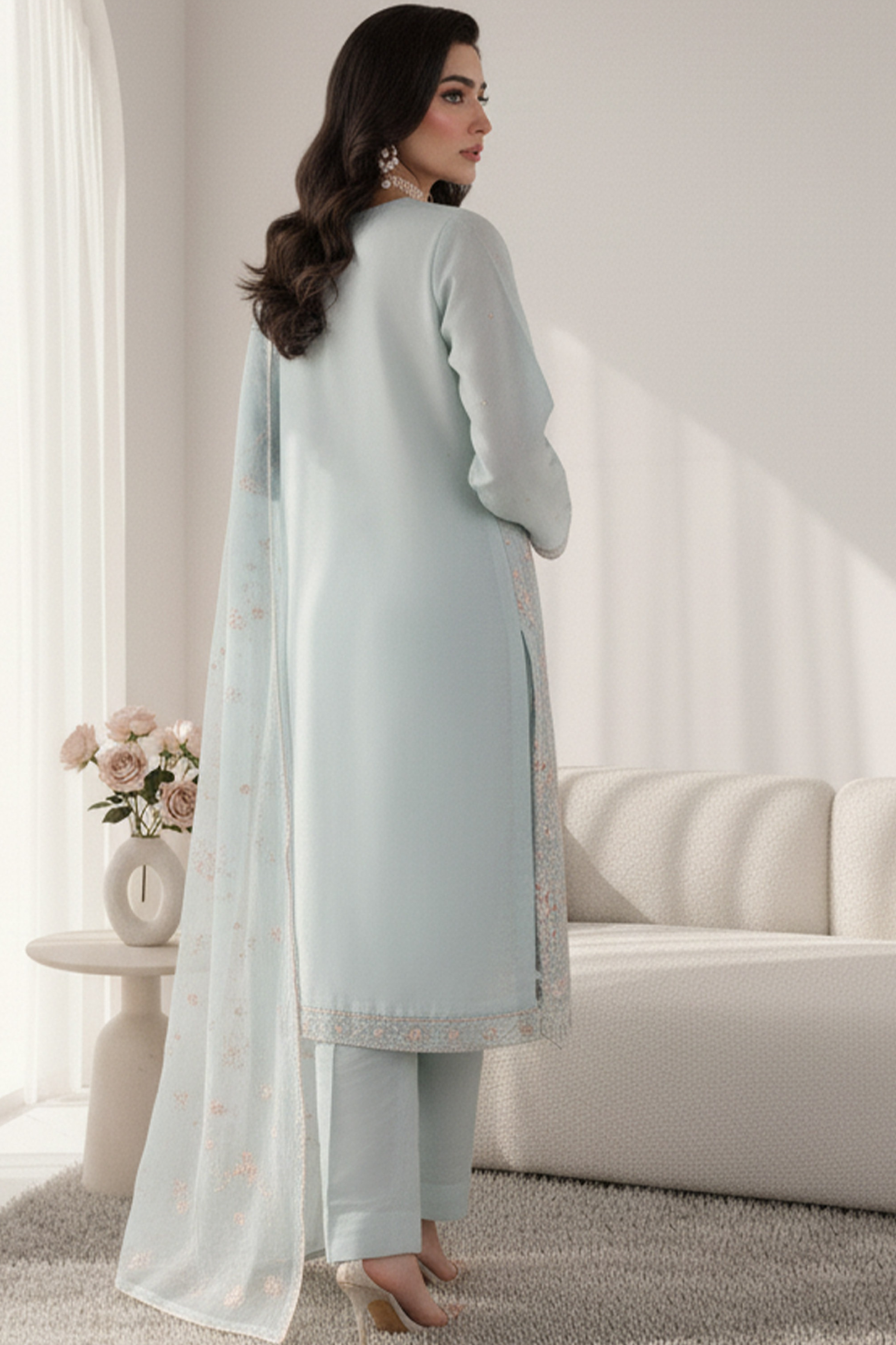 - Sheer organza dupatta with scattered pearls